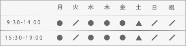 ▲ 土 /9:30-13:00 14:00-17:00 ※ 休診日/火・日・祝日