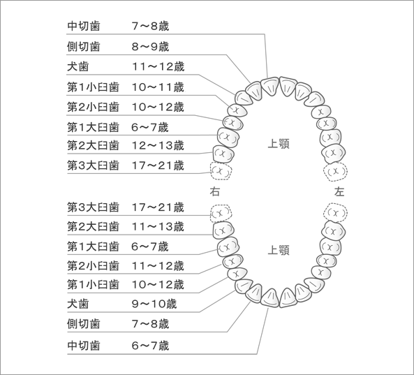 実は子供の歯は、大人になってからの、かみ合わせ・歯並び・顎の発育に大きく影響します。