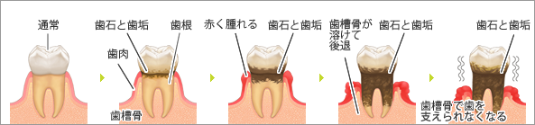 歯周病とは簡単に言うと、歯を支えている骨が少しずつ溶けてしまう病気です。